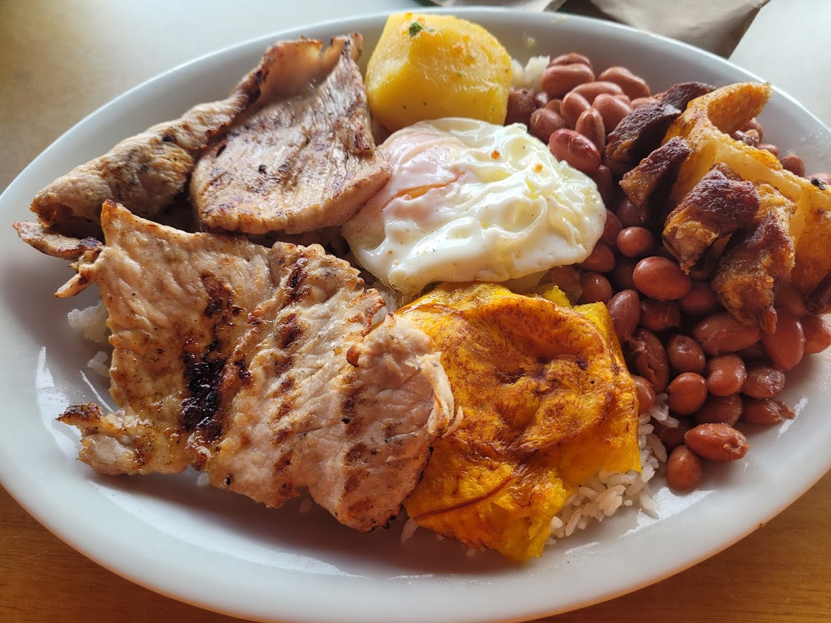 What stands out here is their arepas—varied and generous, including options like Arepa Con Quesito, Arepa XL Con Quesito, and even the Arepa Más Grande de Antioquia. These arepas are clearly a highlight and a reason many stop here, beloved for their authentic preparation and accompanying ingredients such as chorizo, eggs, or chocolate. Alongside, dishes like Carne Asada, Chicharrón, and Bandeja de Cerdo complete a menu designed to satisfy big appetites, especially after a long trip or a day of work.